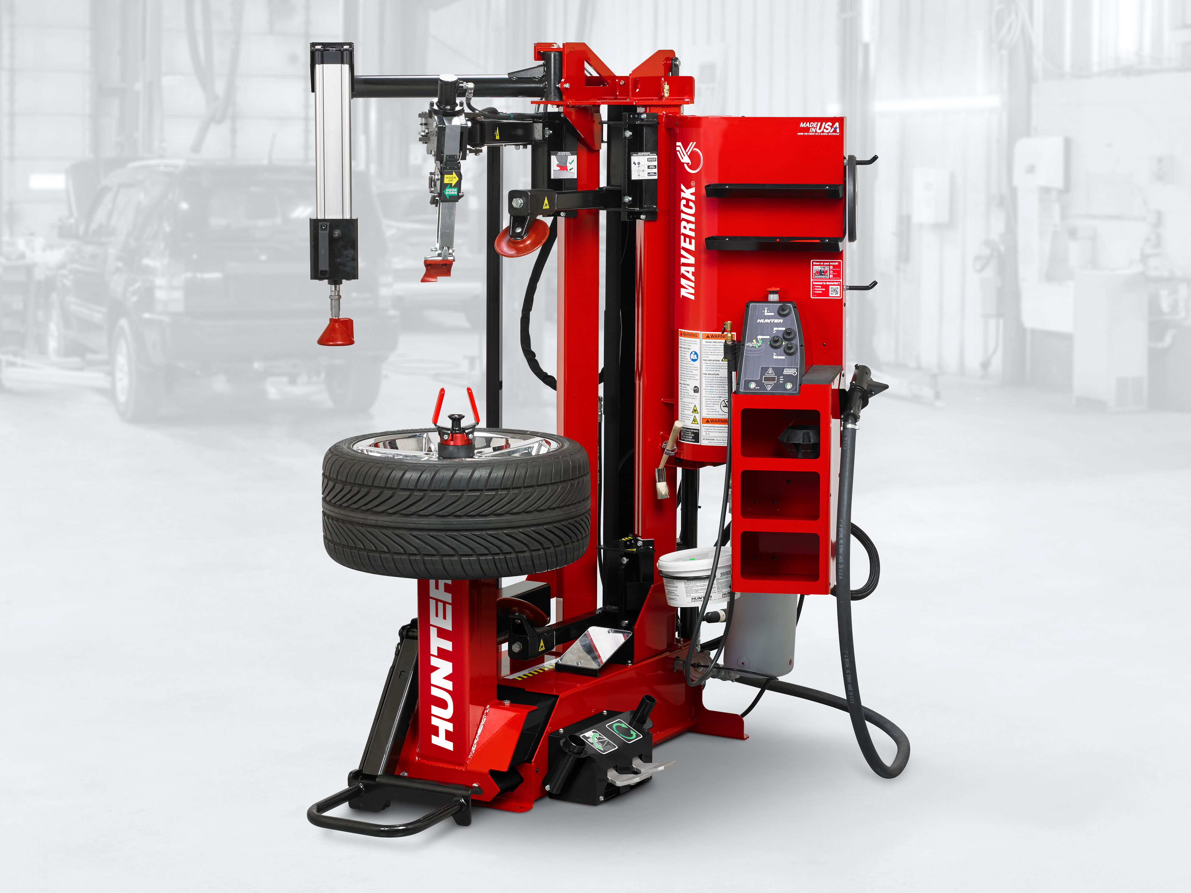 The Maverick® technician-focused tire changing machine designed and built in the USA provides fully variable hydraulic control and unique features that allow a safe and easy tire changing process.